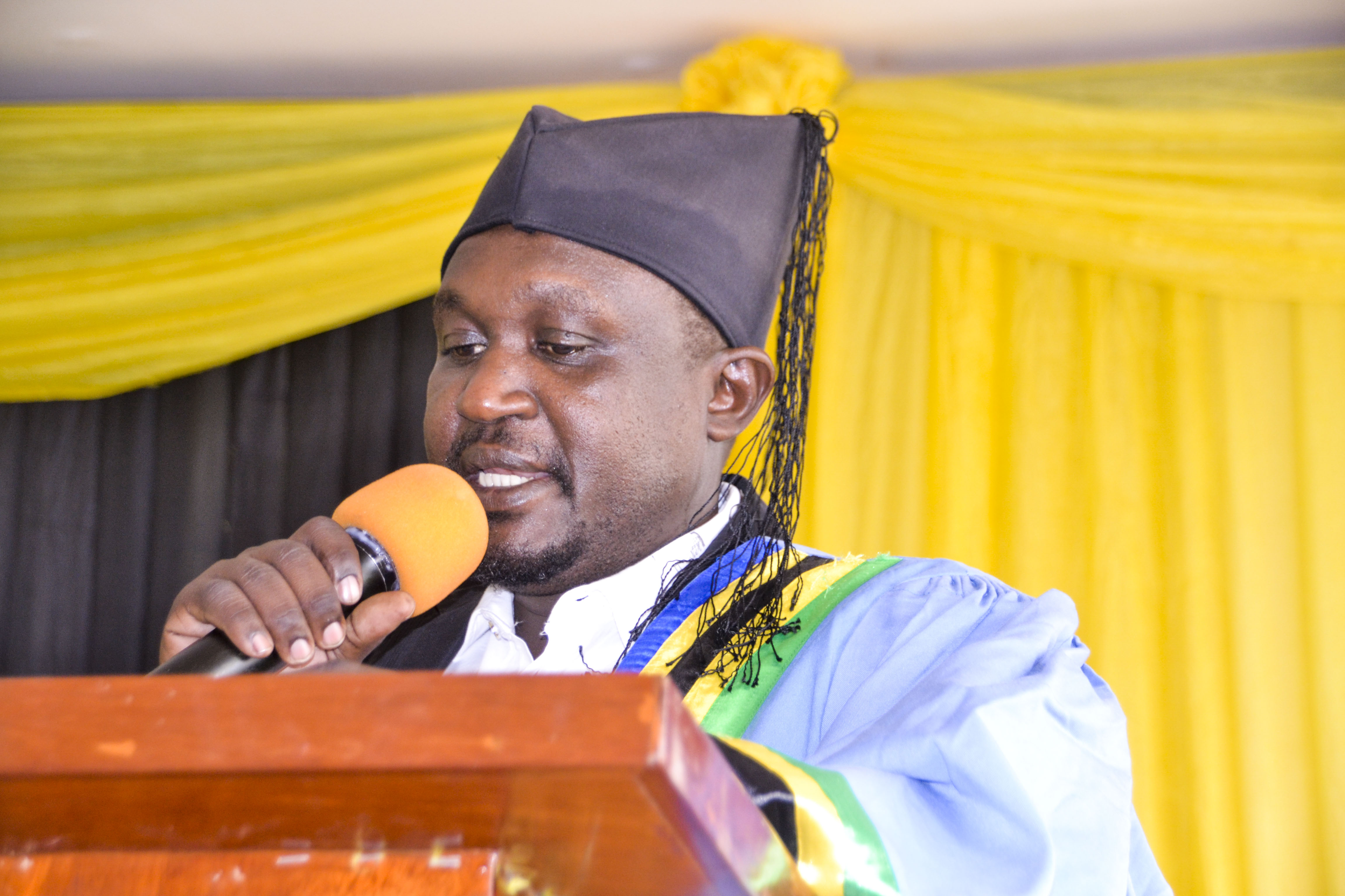 Mwenyekiti wa Halmashauri ya Wilaya ya Kishapu mkoani Shinyanga Mhe. Josephat Limbe akizungumza kwenye Baraza la Madiwani, likilenga kujadili Taarifa za Robo ya Pili wa mwaka wa fedha 2025/2026 (Oktoba-Disemba) katika ukumbi wa mikutano wa Halmashauri.