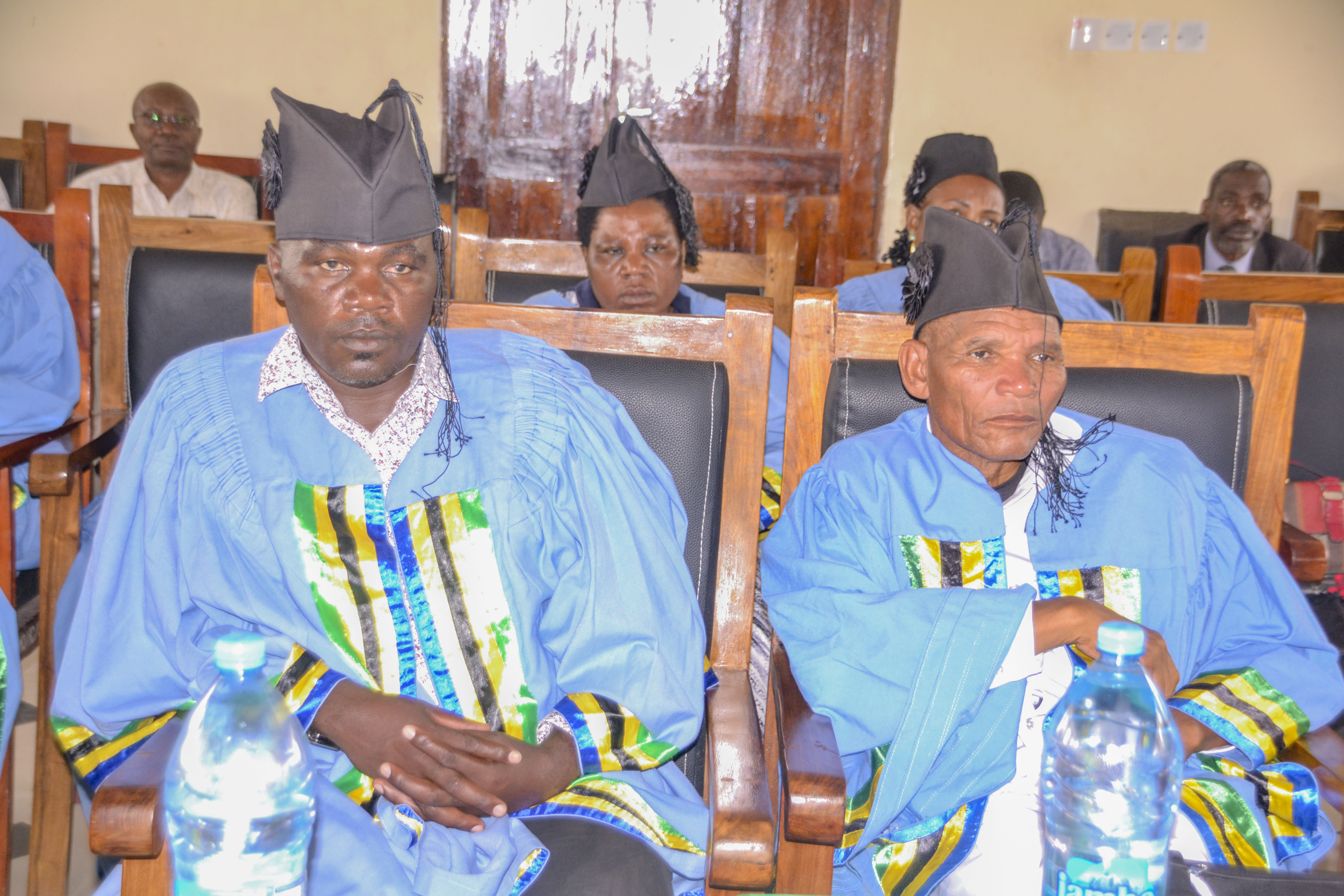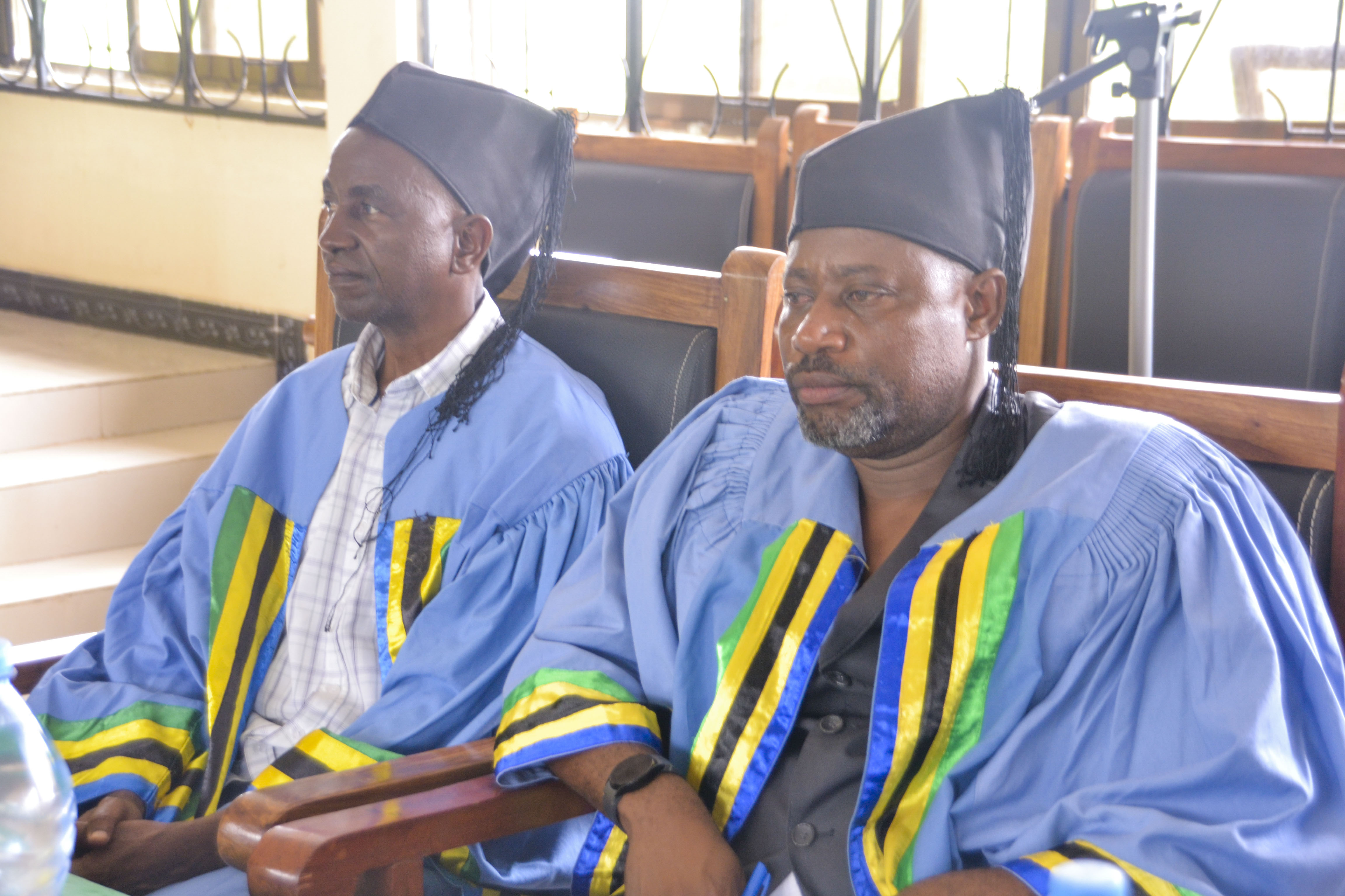 Mwenyekiti wa Chama cha Mapinduzi (CCM) katika Wilaya ya Kishapu, Shija Ntelezu na Mwenyekiti wa Chama cha ACT Wazalendo Wilayani humo wakizungumza kwenye Baraza la Madiwani, likilenga kujadili Taarifa za Robo ya Pili wa mwaka wa fedha 2025/2026 (Oktoba-Disemba) katika ukumbi wa mikutano wa Halmashauri.