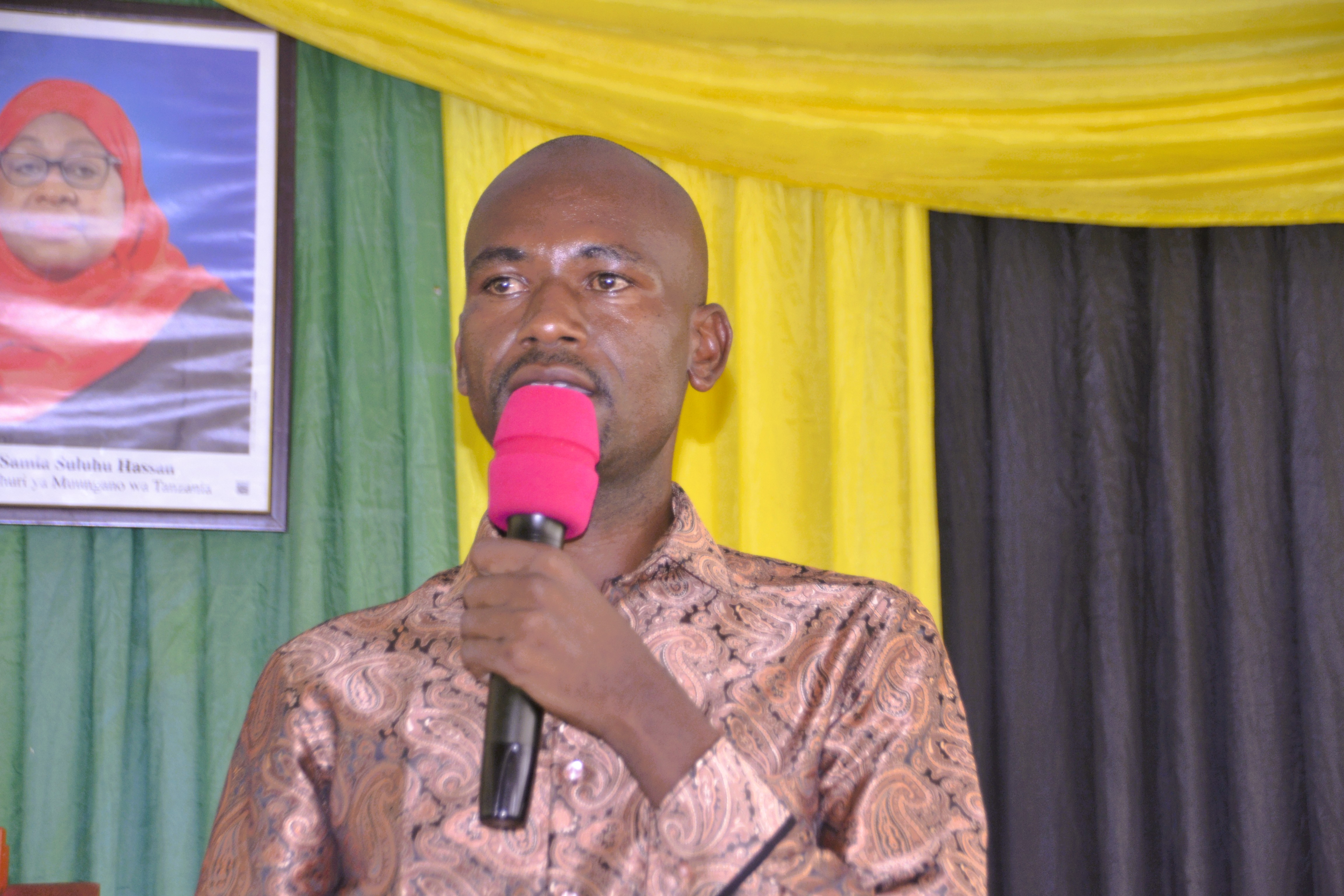Mwenyekiti wa Halmashauri ya Wilaya ya Kishapu akizungumza katika hafla ya utoaji wa mikopo kwa Wanawake, Vijana na Wenye Ulemavu iliyofanyika leo Januari 29, 2026 katika ukumbi wa Halmashauri hiyo.